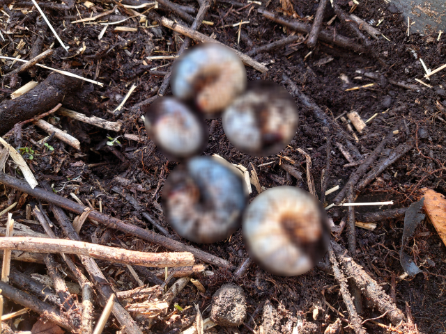 堆肥を堆肥場から出していると、底の方からカブトムシの幼虫がいっぱい出てきました。