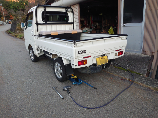 帰宅して、日暮までには時間があったので、タイヤをスタッドレスに履き替えます。