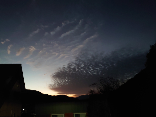 ゆっくり夕空の移り行くのを眺めてたかったのですが、夕食用にナメコの収穫をしなくちゃならなくて、残念ですがそこそこにして。