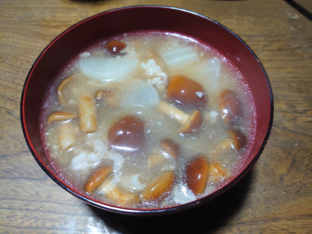 写真の半分くらいを贅沢に使って、ナメコ汁に。