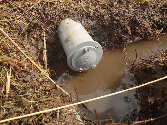 現地では補修が出来無いので、圃場側の水の出口に肥料袋を被せて縛って水が入らない様にして蓋を持ち帰っての修理する事としました。