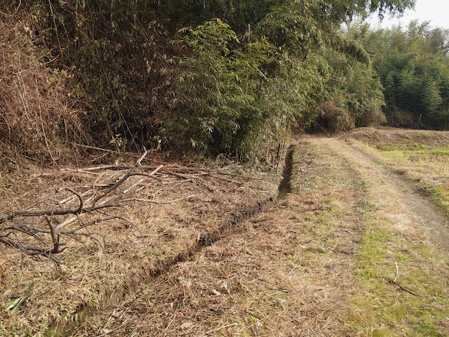 堆肥場を作った後は、水路の上に草が覆い被さっていましたので刈りました。