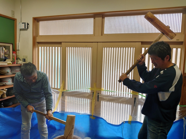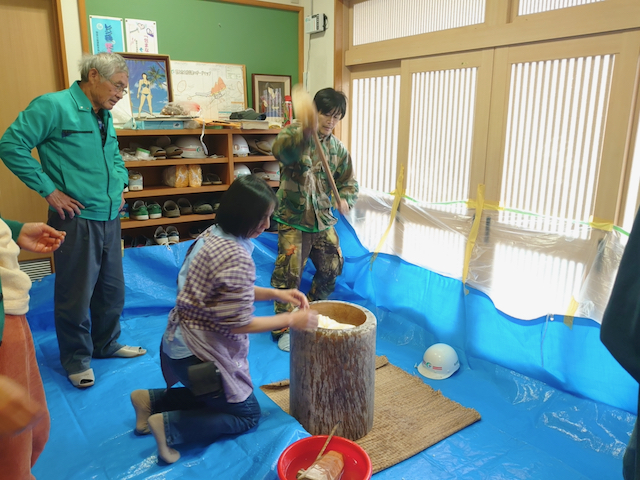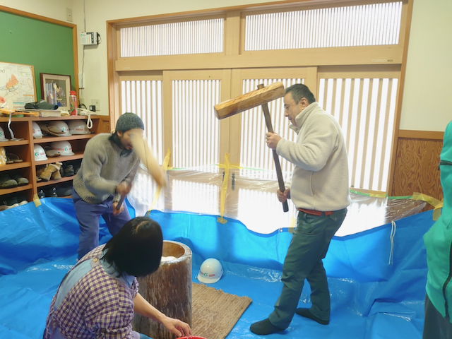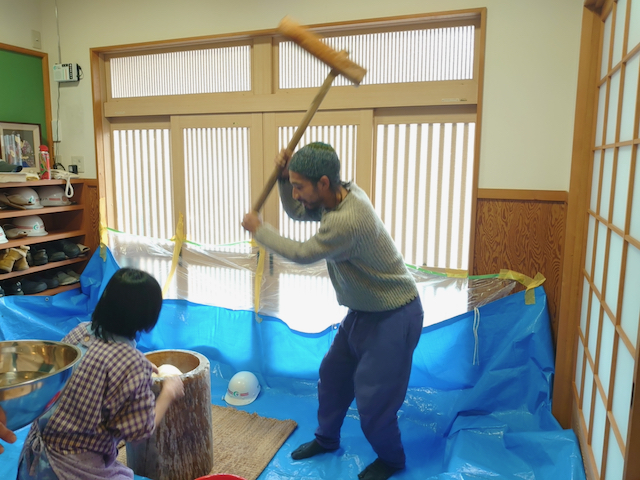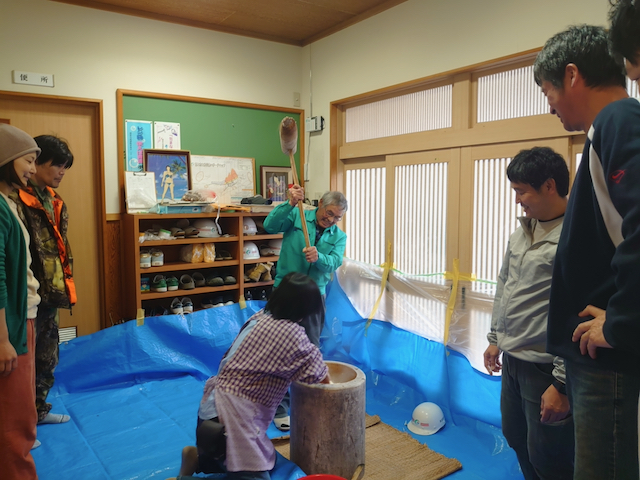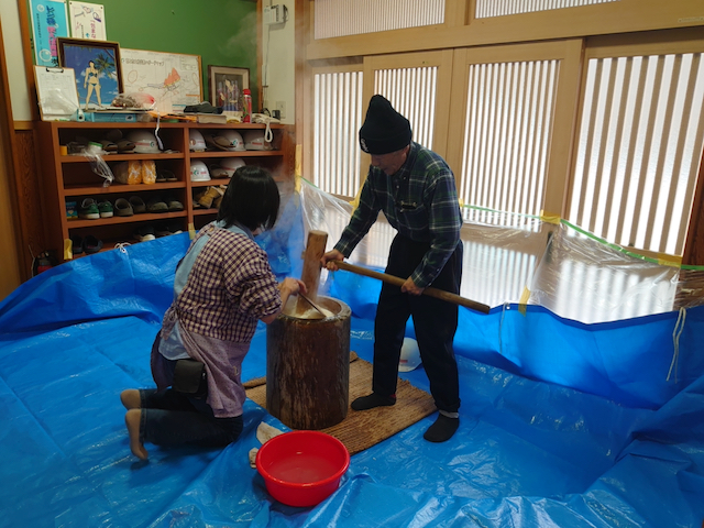 このお二人方は栃洞の方ではありませんが『栃洞の忘年会、楽しそうだなぁ』と言われてましたので、餅つき要員で参加をお願いしました。(笑)