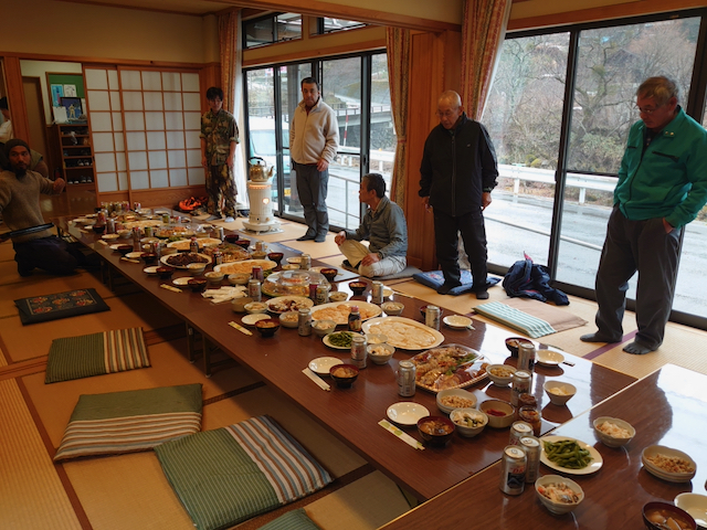 さて、餅がつき上がり、テーブルの上に料理も並び宴会の用意が整ってきました。