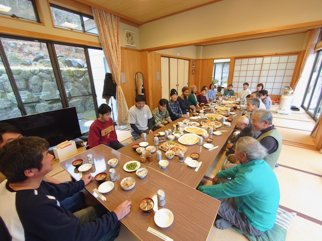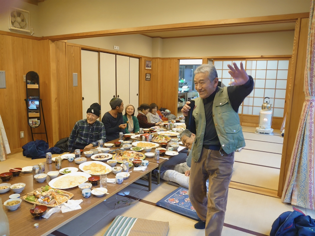 皆さんに着席いただき、組長さん(栃洞地区の代表)が挨拶し、その後、生さんの音頭で乾杯を行いました。