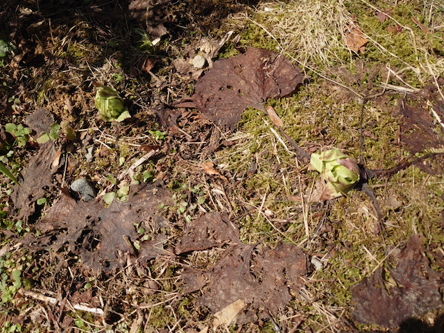 雪が消えると、日のよく当たる所にはフキノトウが出てきます。