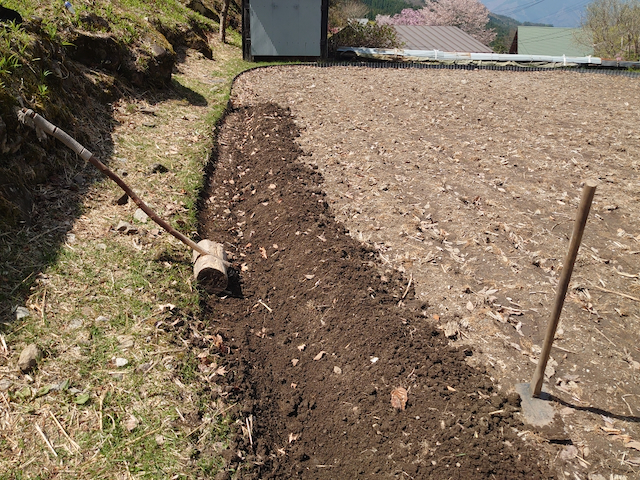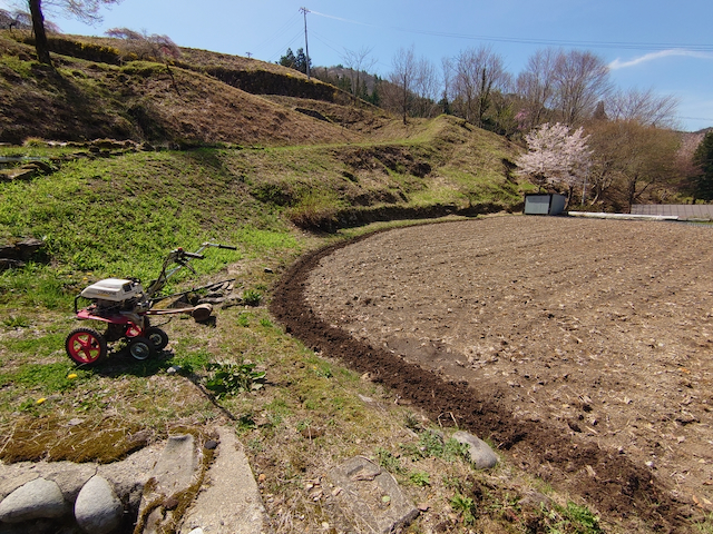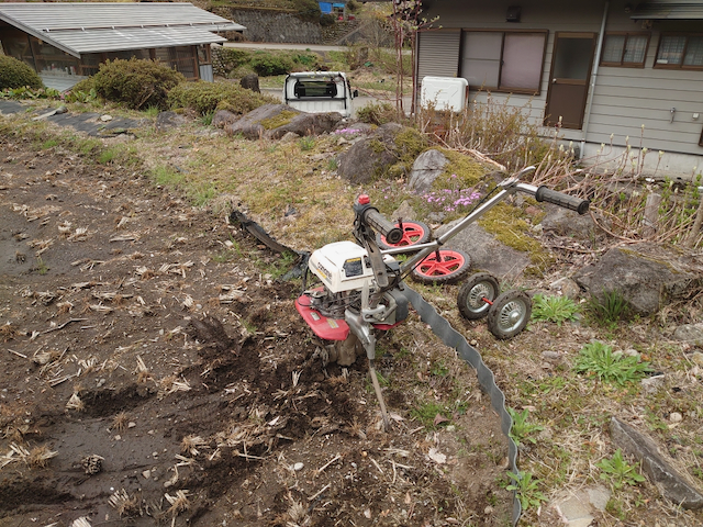 昨日と同様に、畦に沿って管理機で耕して、